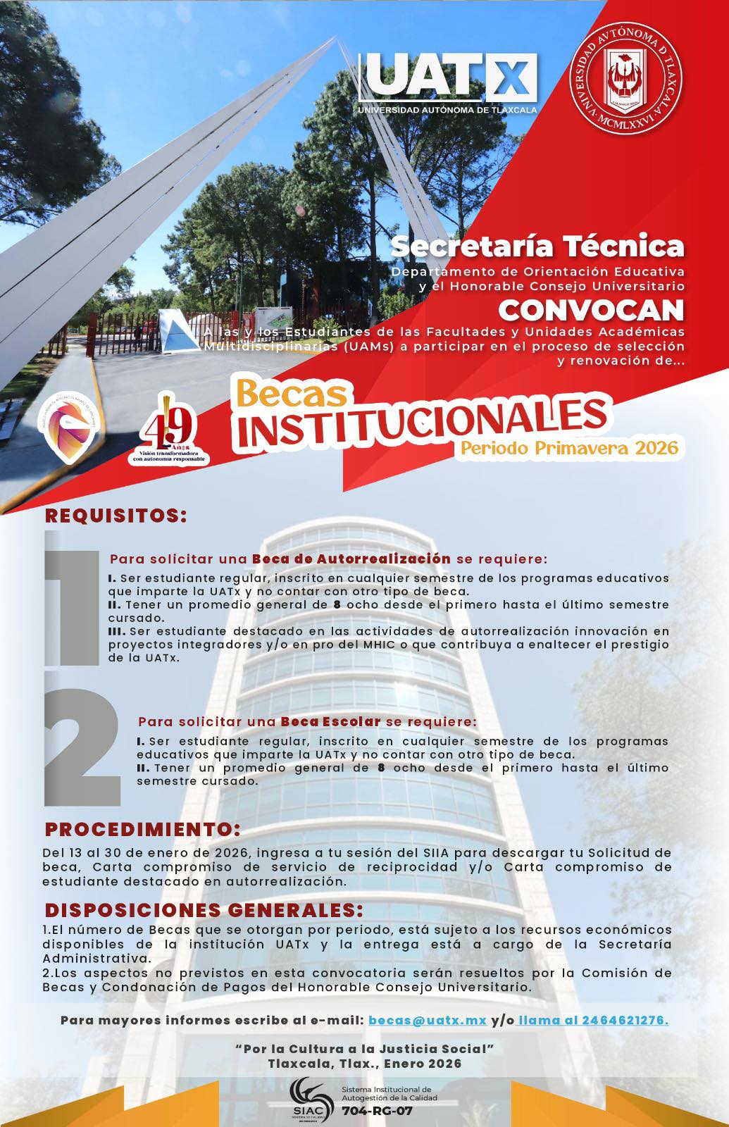 La Universidad Autónoma de Tlaxcala, mantiene su compromiso de fortalecer el Sistema Institucional de Becas, al otorgar estas; considerando, los méritos académicos, la dedicación académica, la contribución para enaltecer el prestigio de la autónoma de Tlaxcala, así como el desarrollo de sus talentos..